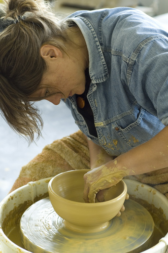 Gedraaid gebruikskeramiek brengt mij terug naar de basis van de klei. Het draaien van de klei brengt mij terug naar mijn eigen basis. Op mijn kannen, bekers en kommen van roodbakkende aardewerkklei pas ik slibdecoratie toe. Voorzien van een rauw glazuur is mijn werk één keer gestookt. Mijn gebruikskeramiek roept het gevoel van het goede leven op. Dit wil ik meegeven aan de gebruiker: leven is goed.